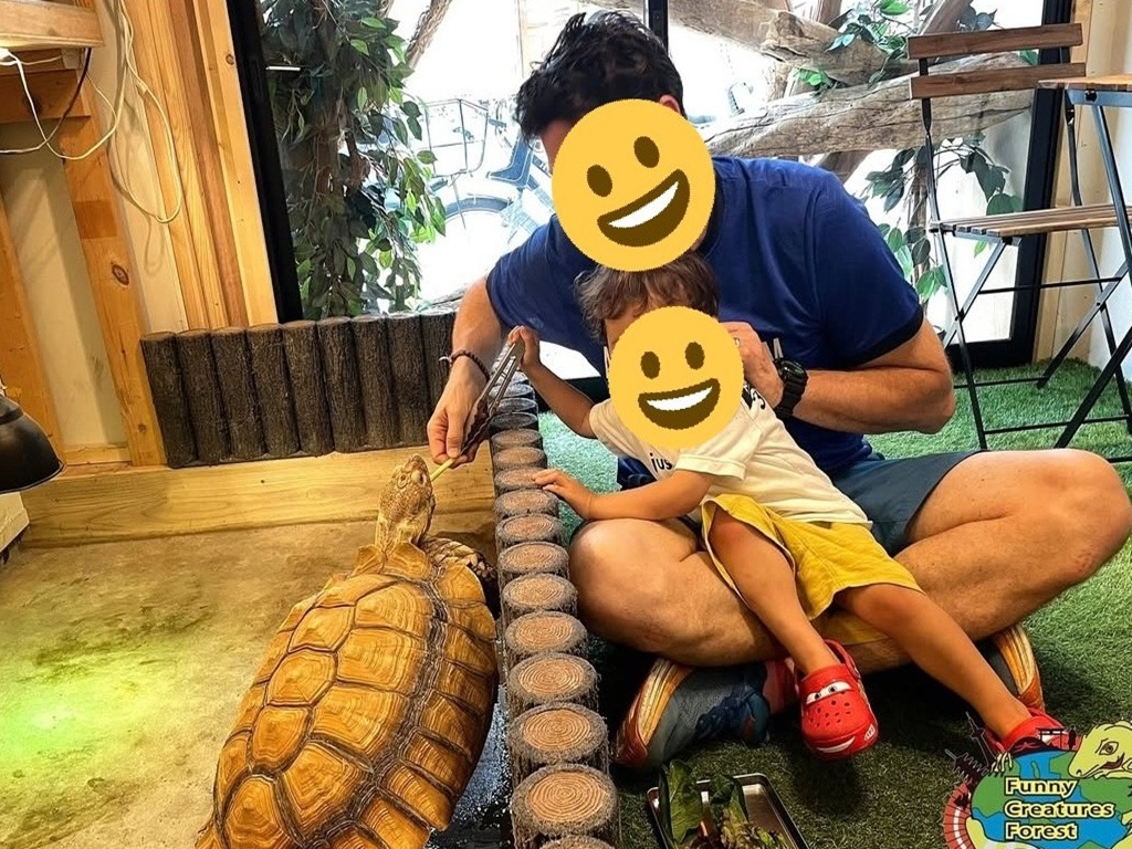 特に要望が多いカメレオンは触れ合いストレスに非常に弱いので原則触れ合いできません。長い舌を伸ばして餌を食べる姿は見られるかも…。